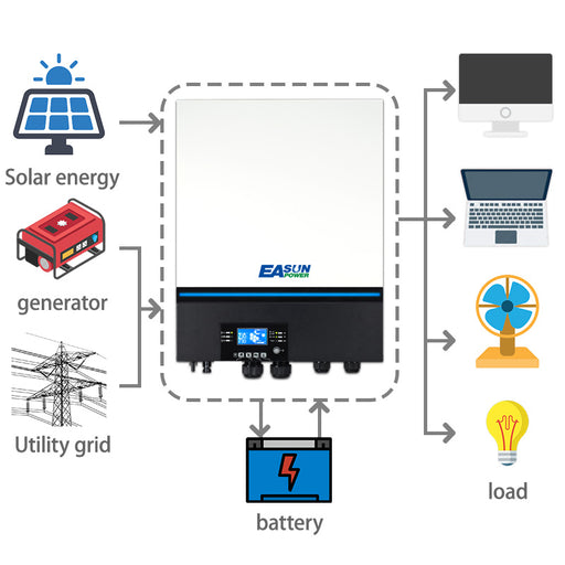 EASUN POWER Hybrid Solar Inverter 5.6KW 230vac MPPT 120A Solar Charger PV Input 6000W Pairing this inverter with the EASUN 10kWh wall-mounted LiFeP...